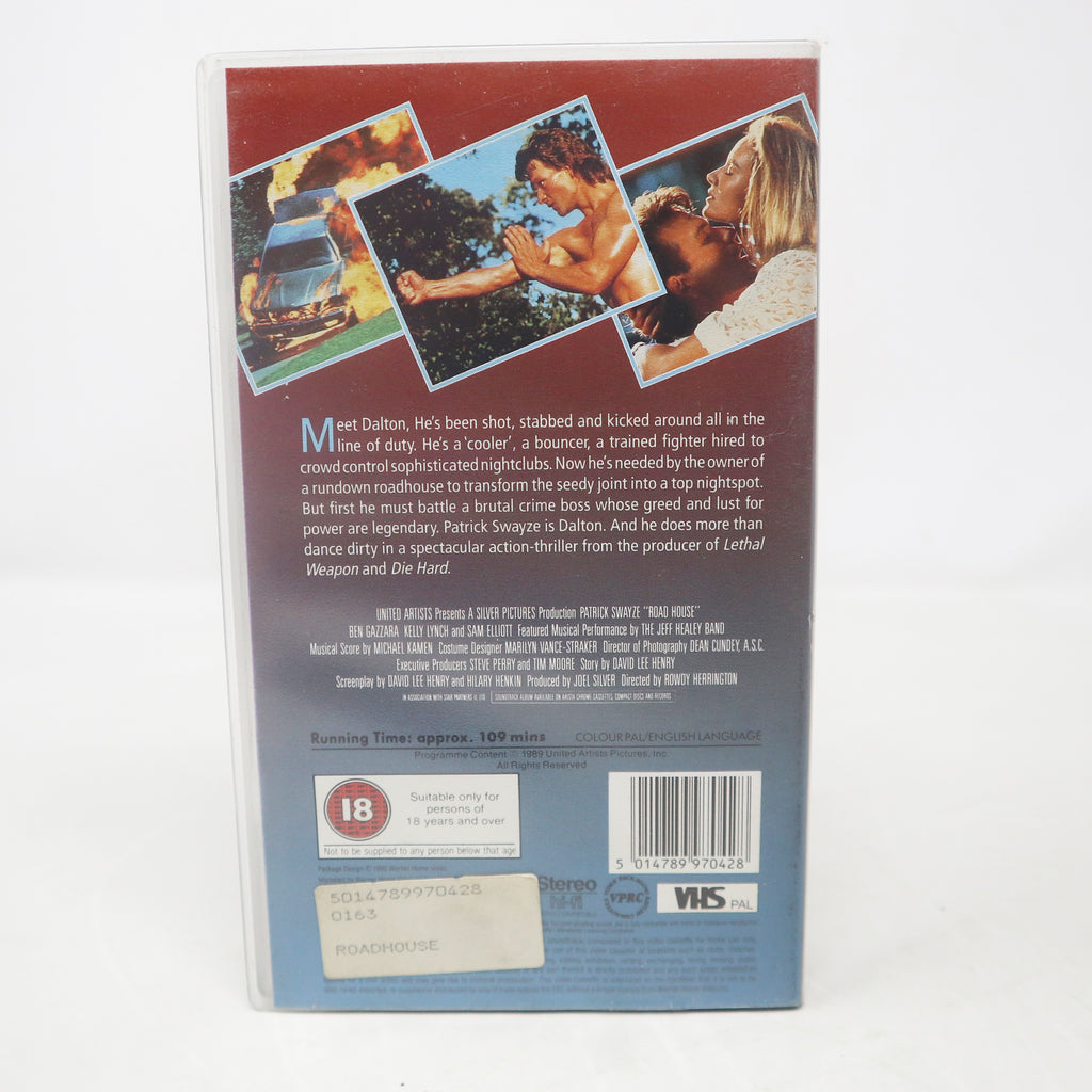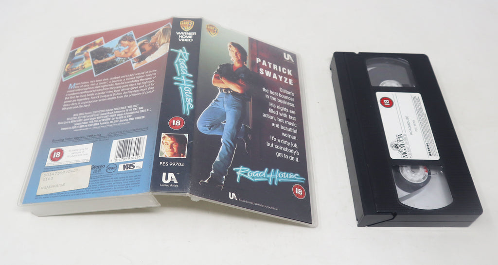 Vintage 1989 80s MGA / UA Home Video Patrick Swayze Road House PAL VHS (Video Home System) Tape Action Thriller Retro Movie Film