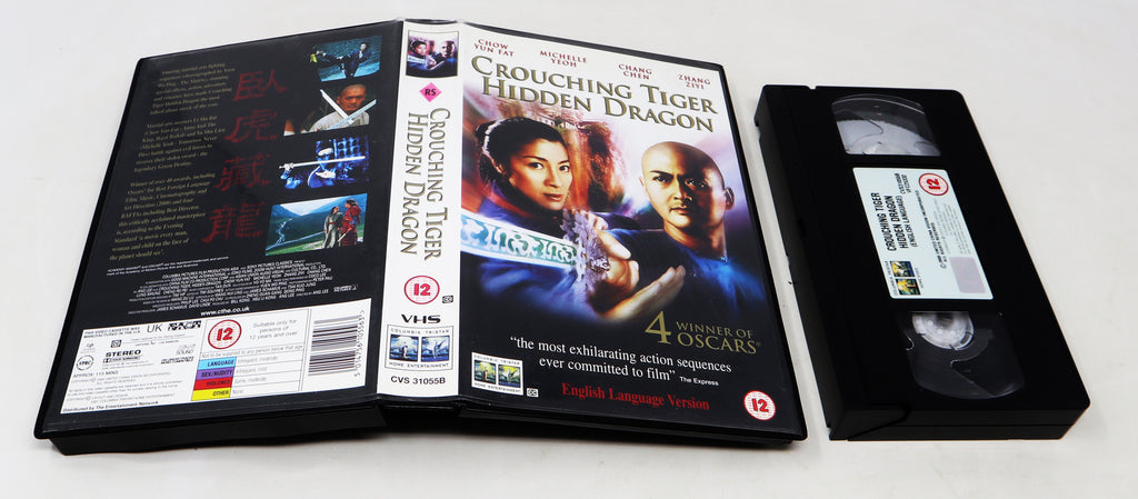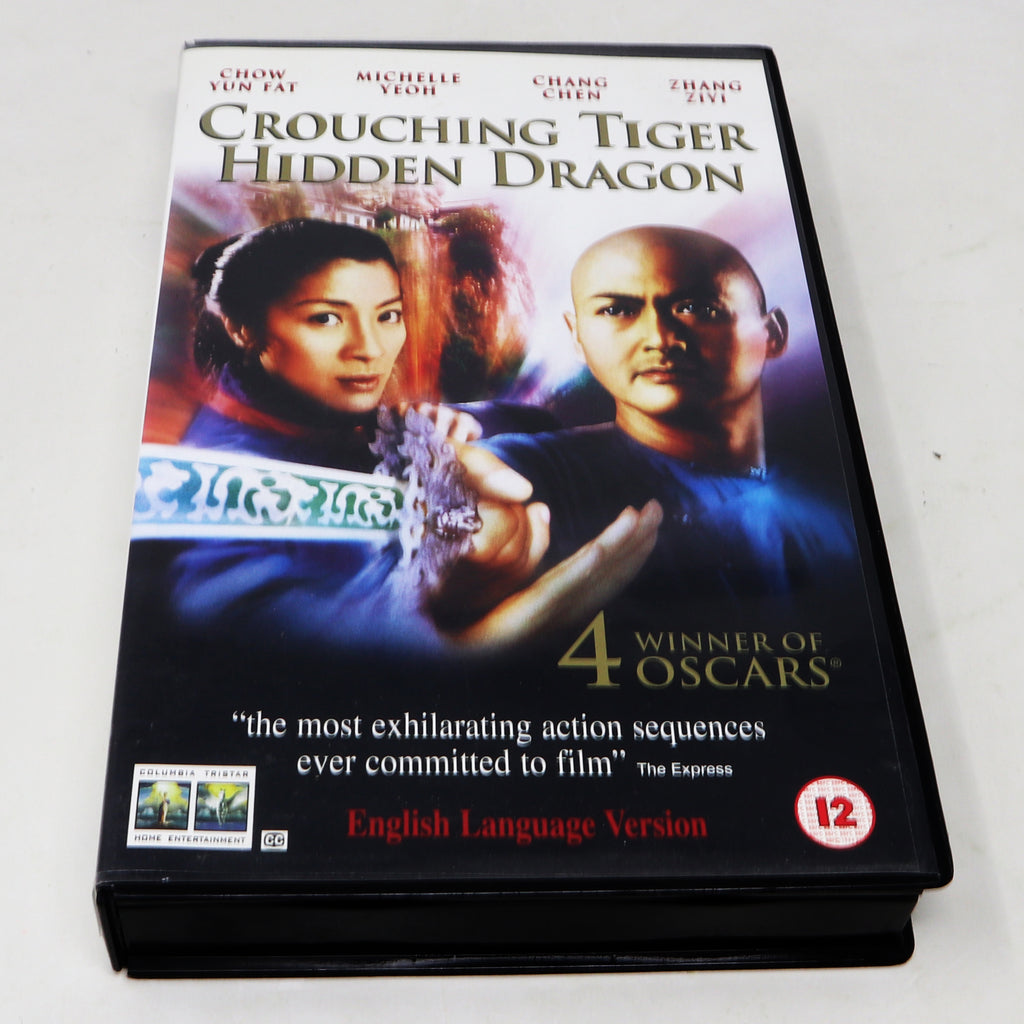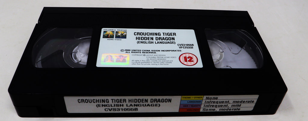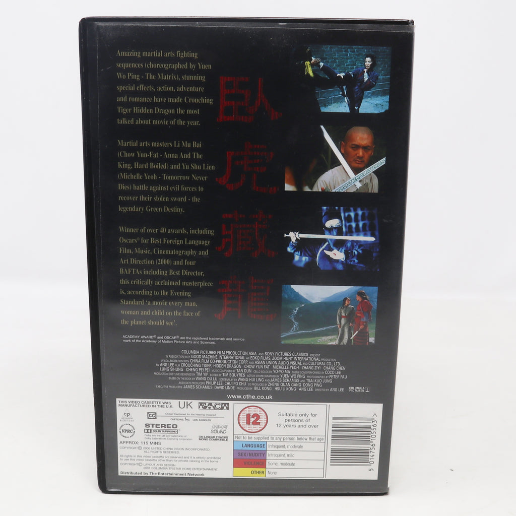 Crouching Tiger Hidden Dragon comes complete and in good condition considering its age with slight wear to the plastic cover and includes its original Case and Tape, as shown. The back cover is printed with '2001 COLUMBIA TRISTAR HIME ENTERTAINMENT'. This VHS displays nicely and is a must for any Martial Arts fan.